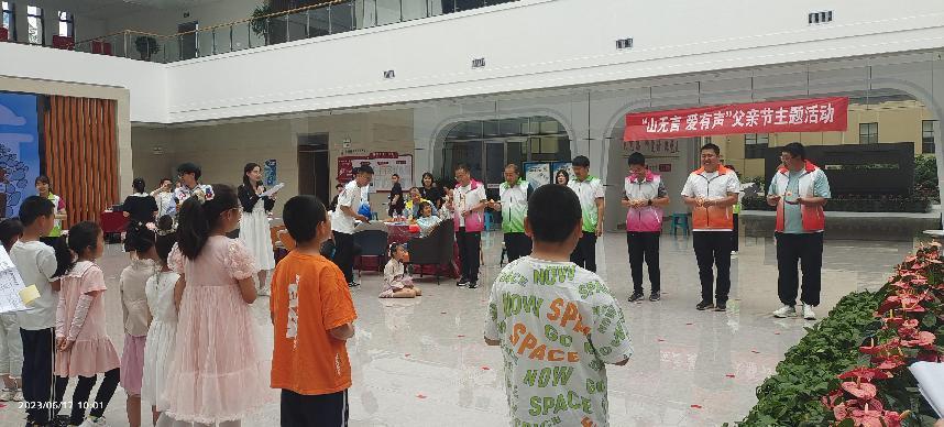 为了加强父亲与孩子之间的交流,增进父亲与孩子之间的感情;丰富社区文化活动,同时促进社区和谐。2023年6月17日上午九点,我系2021级社会工作专业员工于鄂尔多斯市神华康城社区党群服务中心举办了以“山无言,爱有声”为主题的父亲节主题活动,本次活动前期采用线上微信群、朋友圈、社区公众号及线下张贴海报宣传相结合的方式共招募到社区内的12位35-45岁的父亲及所处年龄段为小学3-5年级的7位男孩和11位女孩。