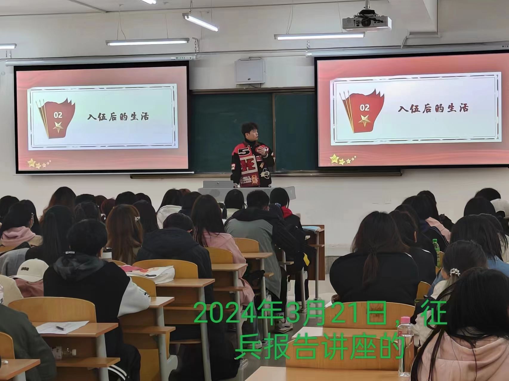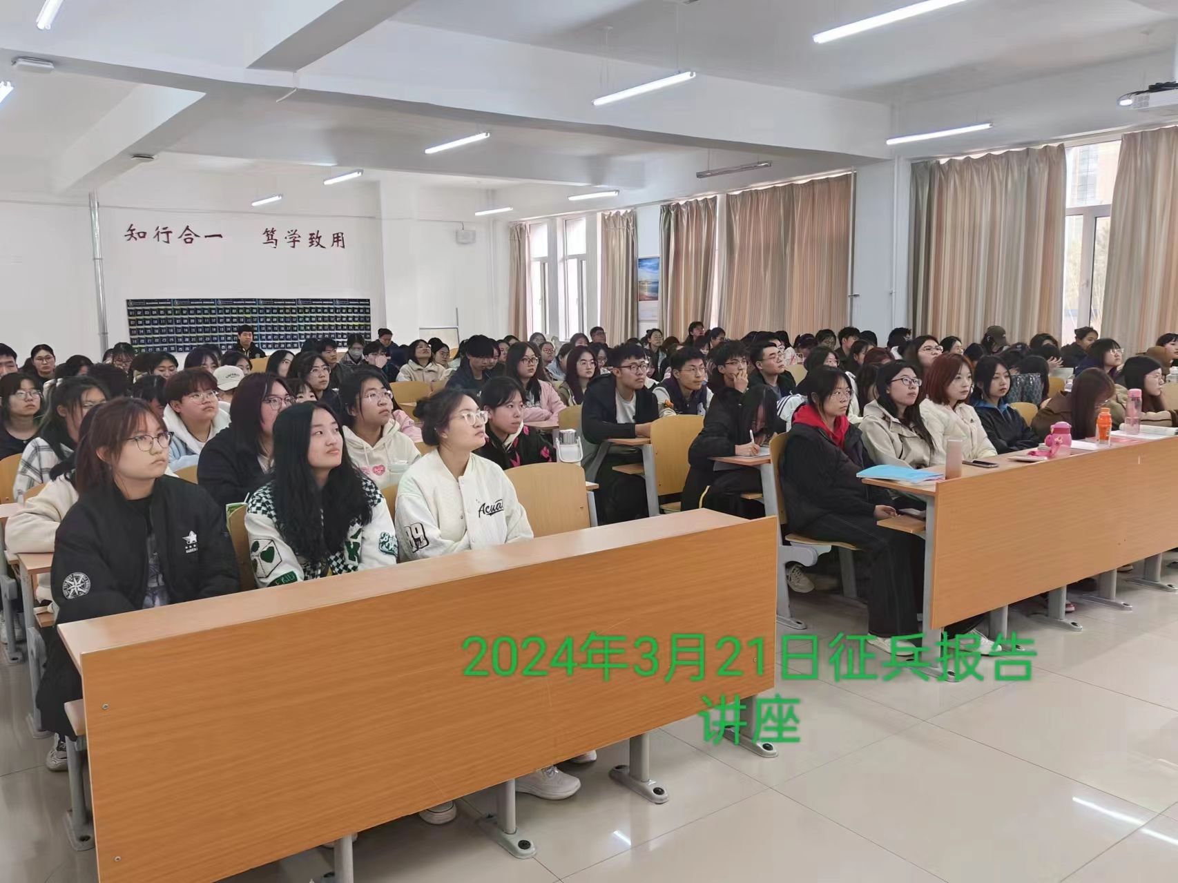 为推进新时代强军事业,配合国家做好2024 年老员工征兵宣传工作,扩大征兵宣传的影响力,激发老员工参军报国热情,鼓励在校生应征入伍服务国防建设,3月21日下午,我系组织开展“感党恩,听党话,跟党走”2024征兵宣传讲座。
