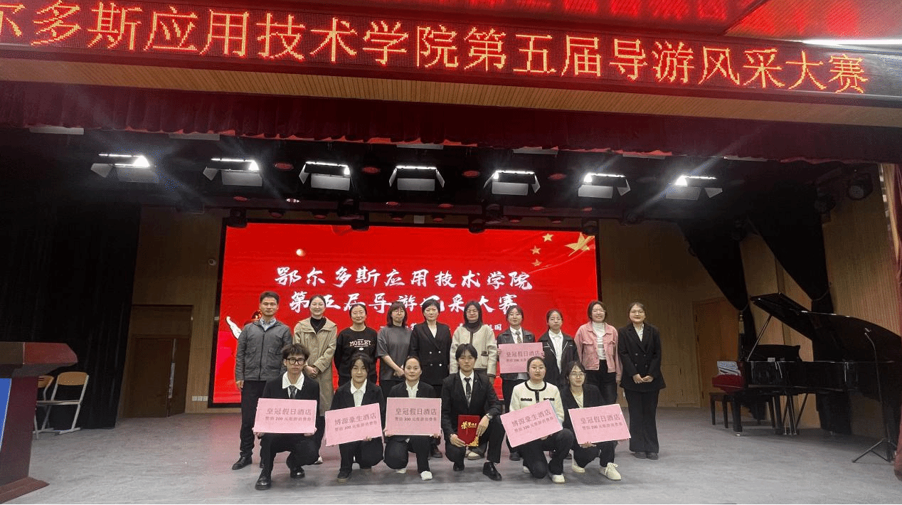 3月29日,由管理系主办、校团委协办、管理系旅服教研室承办的太阳成集团122ccvip第五届导游风采大赛在艺术系小剧场(西阶106)顺利举办。鄂尔多斯市博物院宣教部主任孙瑞、管理系系主任刘海英、教工党支部书记莎仁、旅服教研室主任艾米、旅服教研室副教授王艳、高级导游李雪松担任本次大赛评委。管理系旅服教研室全体教师、英语教研室、财管教研室、语文教研室部分教师及现场100余名员工观看了比赛。