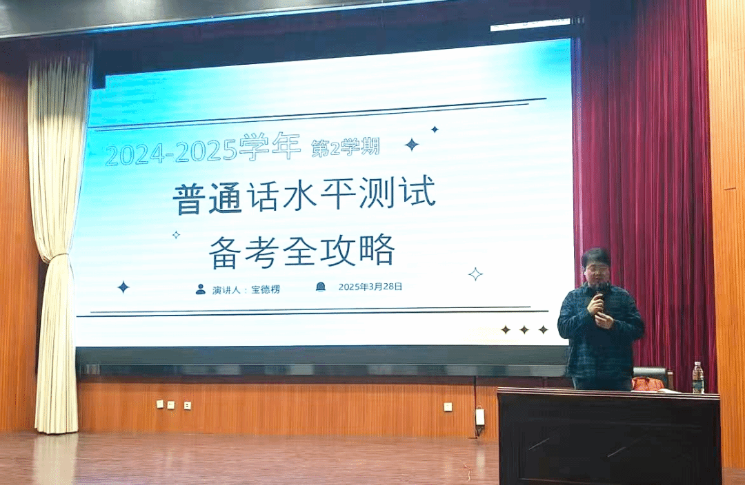 讲座伊始,宝德楞老师凭借丰富的培训经验与专业知识,深入剖析普通话水平测试的题型与评分标准,为同学们勾勒出考试全貌,让同学们对考试有更直观、全面的认识。在发音训练环节,针对内蒙古方言与普通话发音的差异,针对l与n不分、zh、ch、sh与j、q、x混淆等常见问题,宝老师细致讲解、亲身示范,还通过绕口令、词语朗读等方式,带领同学们大量练习,及时纠正错误发音,同学们意识到发音准确性和流利度对于提升普通话水平测试的重要性。
