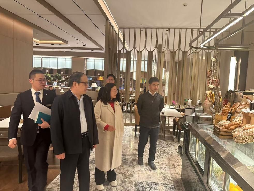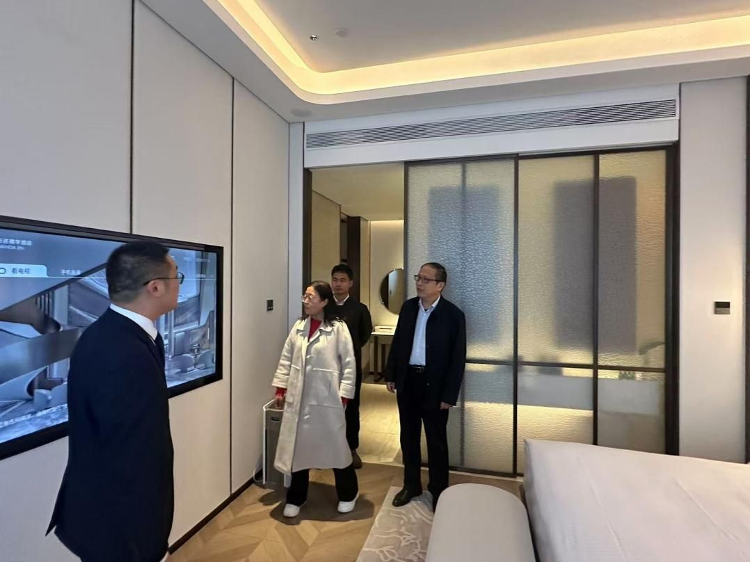 万达锦华酒店的领导对我系一行的到访表示了热烈欢迎,并带领徐书记一行人参观了酒店各部门,详细了解了酒店的布局设计、装修风格以及设施设备的配置情况。我系领导对对酒店未来的服务品质和顾客体验十分赞赏。